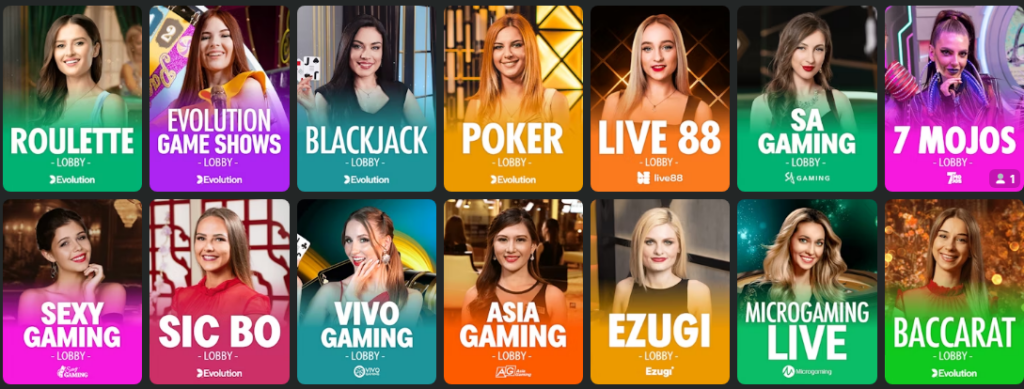 - Live Καζίνο (Live Casino) – Ζωντανά τραπέζια με πραγματικούς dealers για αυθεντική εμπειρία καζίνο.