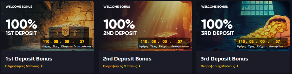 Με την εγγραφή σας, αποκτάτε άμεση πρόσβαση στα μπόνους κατάθεσης, τα οποία περιλαμβάνουν γενναιόδωρες προσφορές όπως το μπόνους πρώτης κατάθεσης 100%. Αυτά τα μπόνους δίνουν την ευκαιρία να ξεκινήσετε με επιπλέον κεφάλαια.