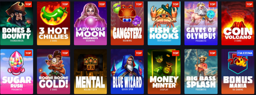 Μεγάλη ποικιλία παιχνιδιών από 81 παρόχους.