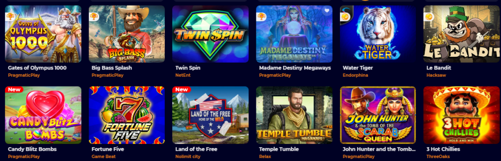 Το CosmicSlot Casino προσφέρει μια εκτενή γκάμα παιχνιδιών, ικανοποιώντας κάθε τύπο παίκτη. Η πλατφόρμα διαθέτει πάνω από 3,100 παιχνίδια από περισσότερους από 25 παρόχους, συμπεριλαμβανομένων των Yggdrasil και BetSoft. Οι κατηγορίες παιχνιδιών περιλαμβάνουν κουλοχέρηδες, επιτραπέζια παιχνίδια, ζωντανό καζίνο και προοδευτικά τζάκποτ.