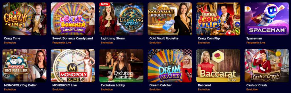 - Παροχείς όπως Evolution και Ezugi, παρέχοντας HD streaming και δυνατότητα αλληλεπίδρασης με ζωντανούς ντίλερ.