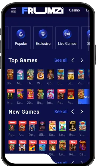 Frumzi Casino offers an impressive collection of games that cater to all player preferences. From popular slots to live casino games, Frumzi has something for everyone. Here’s a breakdown of the game categories you’ll find at Frumzi Casino: