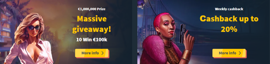 The minimum deposit and withdrawal at Snatch Casino is €20 or the equivalent in cryptocurrencies such as 0.0007 BTC for Bitcoin.