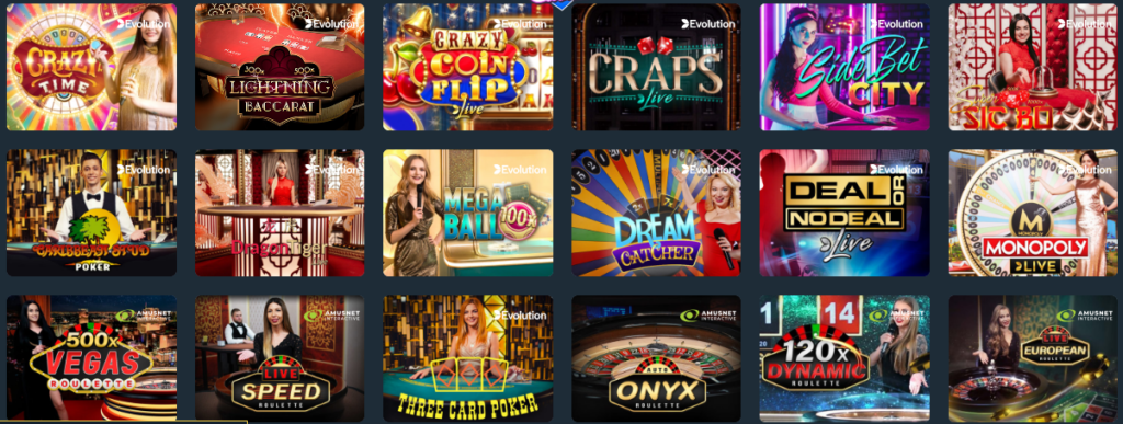 - Live Casino: live versions of table games with real croupiers from providers such as Evolution Gaming and Vivo Gaming.