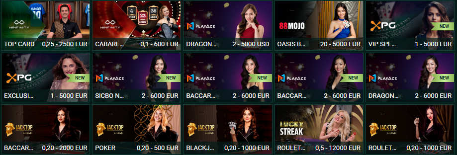 - Roulette, blackjack, baccarat and poker with real-time dealers from Evolution, Pragmatic Live and others.