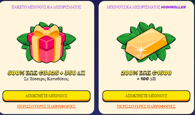 Ελκυστικά μπόνους καλωσορίσματος με δωρεάν περιστροφές.