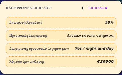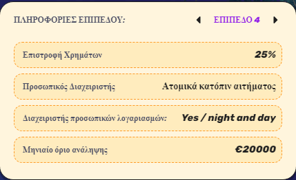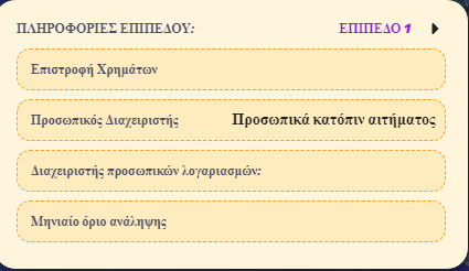 | Επίπεδο | Επιστροφή Χρημάτων | Προσωπικός Διαχειριστής | Διαχειριστής Προσωπικών Λογαριασμών | Μηνιαίο Όριο Ανάληψης |