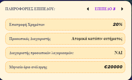 | 3 | 20% | Ατομικά κατόπιν αιτήματος | ΝΑΙ | €20,000 |