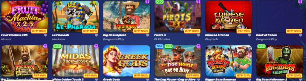 Οι παίκτες μπορούν να απολαύσουν μια μεγάλη ποικιλία παιχνιδιών, συμπεριλαμβανομένων κουλοχέρηδων, επιτραπέζιων παιχνιδιών, πόκερ και live καζίνο με πραγματικούς dealers.