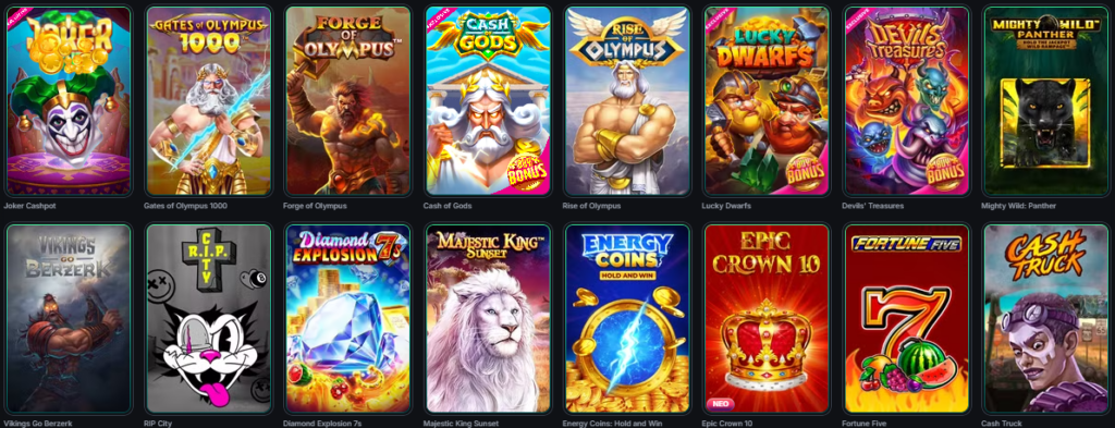Το καζίνο προσφέρει μεγάλη ποικιλία παιχνιδιών, όπως κουλοχέρηδες, παιχνίδια τραπεζιού, ζωντανό καζίνο και τζάκποτ κουλοχέρηδες.
