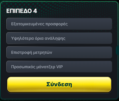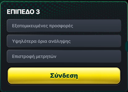 | Επίπεδο 1 | Προσφορές ιστοσελίδας, Πρόσβαση σε Live Chat 24/7 |