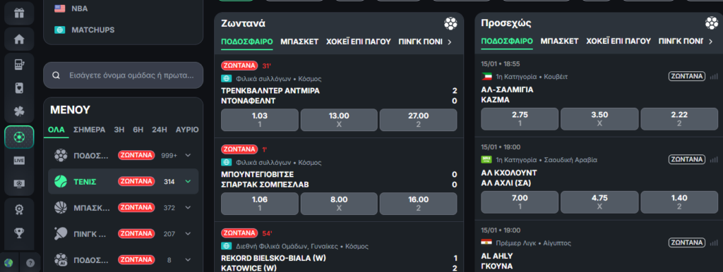 Το Kinbet Casino προσφέρει μια ολοκληρωμένη και δυναμική πλατφόρμα στοιχημάτων που καλύπτει ένα ευρύ φάσμα αθλημάτων και διοργανώσεων. Οι παίκτες μπορούν να τοποθετούν στοιχήματα σε δημοφιλή αθλήματα όπως ποδόσφαιρο, τένις, μπάσκετ, χόκεϊ επί πάγου και πινγκ πονγκ, απολαμβάνοντας ανταγωνιστικές αποδόσεις. Η λειτουργία ζωντανού στοιχήματος (Live Betting) δίνει τη δυνατότητα στους χρήστες να παρακολουθούν αγώνες σε πραγματικό χρόνο και να τοποθετούν στοιχήματα κατά τη διάρκεια των γεγονότων, ενισχύοντας την αίσθηση της αδρεναλίνης και της αλληλεπίδρασης. Το διαδραστικό περιβάλλον της πλατφόρμας με εύχρηστο μενού επιτρέπει άμεση πλοήγηση ανάμεσα σε ζωντανά και επερχόμενα στοιχηματικά γεγονότα. Το Kinbet Casino συνδυάζει την ευκολία στη χρήση με την ποικιλία επιλογών, προσφέροντας μια ολοκληρωμένη εμπειρία στοιχηματισμού που ανταποκρίνεται στις ανάγκες κάθε παίκτη.