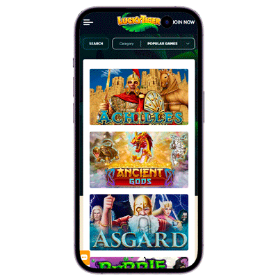 Το Lucky Tiger Casino προσφέρει μια εκτενή συλλογή παιχνιδιών καζίνο που καλύπτουν τις προτιμήσεις κάθε παίκτη. Συνεργάζεται με κορυφαίους παρόχους λογισμικού, όπως η RealTime Gaming (RTG), για να παρέχει ποιοτικά και διασκεδαστικά παιχνίδια. Η γκάμα των παιχνιδιών περιλαμβάνει: