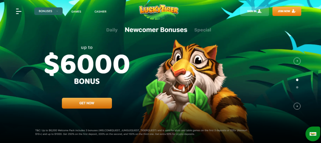 Το Lucky Tiger Casino ιδρύθηκε το 2020 και λειτουργεί υπό άδεια της κυβέρνησης του Κουρασάο, προσφέροντας ένα περιβάλλον παιχνιδιού σχεδιασμένο να προσελκύει παίκτες με θεματολογία ζούγκλας και εξερεύνησης. Το καζίνο προσφέρει ένα γενναιόδωρο μπόνους καλωσορίσματος που περιλαμβάνει 270% στην πρώτη κατάθεση και 35 δωρεάν περιστροφές στο δημοφιλές φρουτάκι Fortune Digging. Εκτός από αυτό, διαθέτει και άλλες προσφορές όπως μπόνους εγγραφής 150%, εβδομαδιαίο μπόνους 100% και μπόνους παραπομπής 120%, ανάλογα με το πρόγραμμα προωθήσεων που “τρέχει” κάθε περίοδο. Οι παίκτες μπορούν να απολαύσουν μια πλούσια συλλογή παιχνιδιών από την RealTime Gaming (RTG), με κουλοχέρηδες, μπλάκτζακ, ρουλέτα, βίντεο πόκερ και εξειδικευμένους τίτλους όπως Win Win Vegas, Casino Ignite και Mafia, κάτι που το φέρνει σε ανταγωνισμό με τα καλυτερα ευρωπαικα διαδικτυακά casino της αγοράς. Όσον αφορά τις πληρωμές, το Lucky Tiger υποστηρίζει διάφορες μεθόδους όπως πιστωτικές και χρεωστικές κάρτες, Bitcoin, Neosurf, και τραπεζικό έμβασμα, προσφέροντας επιλογές τόσο για παραδοσιακούς όσο και για crypto παίκτες.