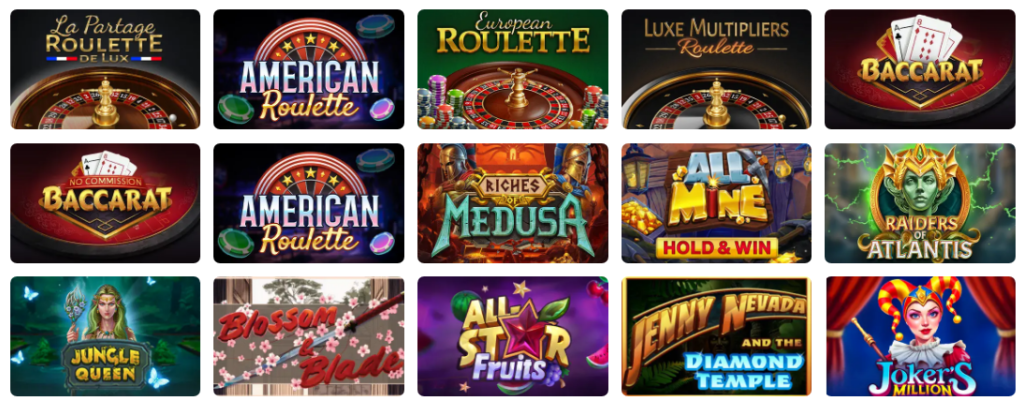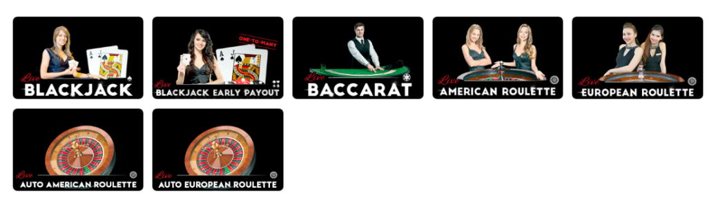 - Επιτραπέζια Παιχνίδια: Κλασικά παιχνίδια όπως Μπλάκτζακ, Ρουλέτα και Μπακαρά.
