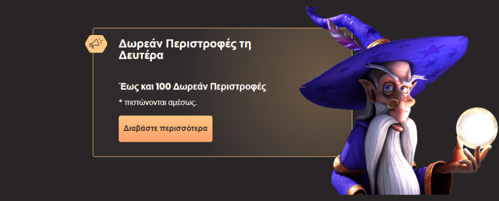 | 3 | 100: €1 | €10 + 20 Δωρεάν Περιστροφές | 0% |