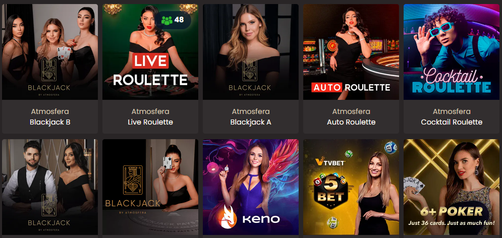 - Επιτραπέζια Παιχνίδια (Table Games): Προσφέρουν διάφορες παραλλαγές του μπλακτζάκ, της ρουλέτας, του πόκερ και άλλων κλασικών παιχνιδιών καζίνο.