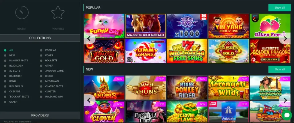 Το PlanBet Casino προσφέρει μια μεγάλη ποικιλία παιχνιδιών για κάθε τύπο παίκτη, από τους λάτρεις των κλασικών φρουτάκια μέχρι αυτούς που προτιμούν τα επιτραπέζια και τα ζωντανά τραπέζια με αληθινούς κρουπιέρηδες. Όλοι οι τίτλοι προέρχονται από κορυφαίους παρόχους λογισμικού, εξασφαλίζοντας υψηλή ποιότητα, δίκαιο παιχνίδι και διασκέδαση σε κάθε συνεδρία.